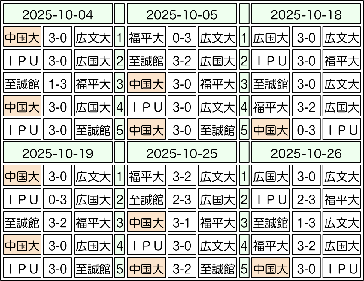 | 中国学連 | 対戦相手 | 試合 | 会場 |