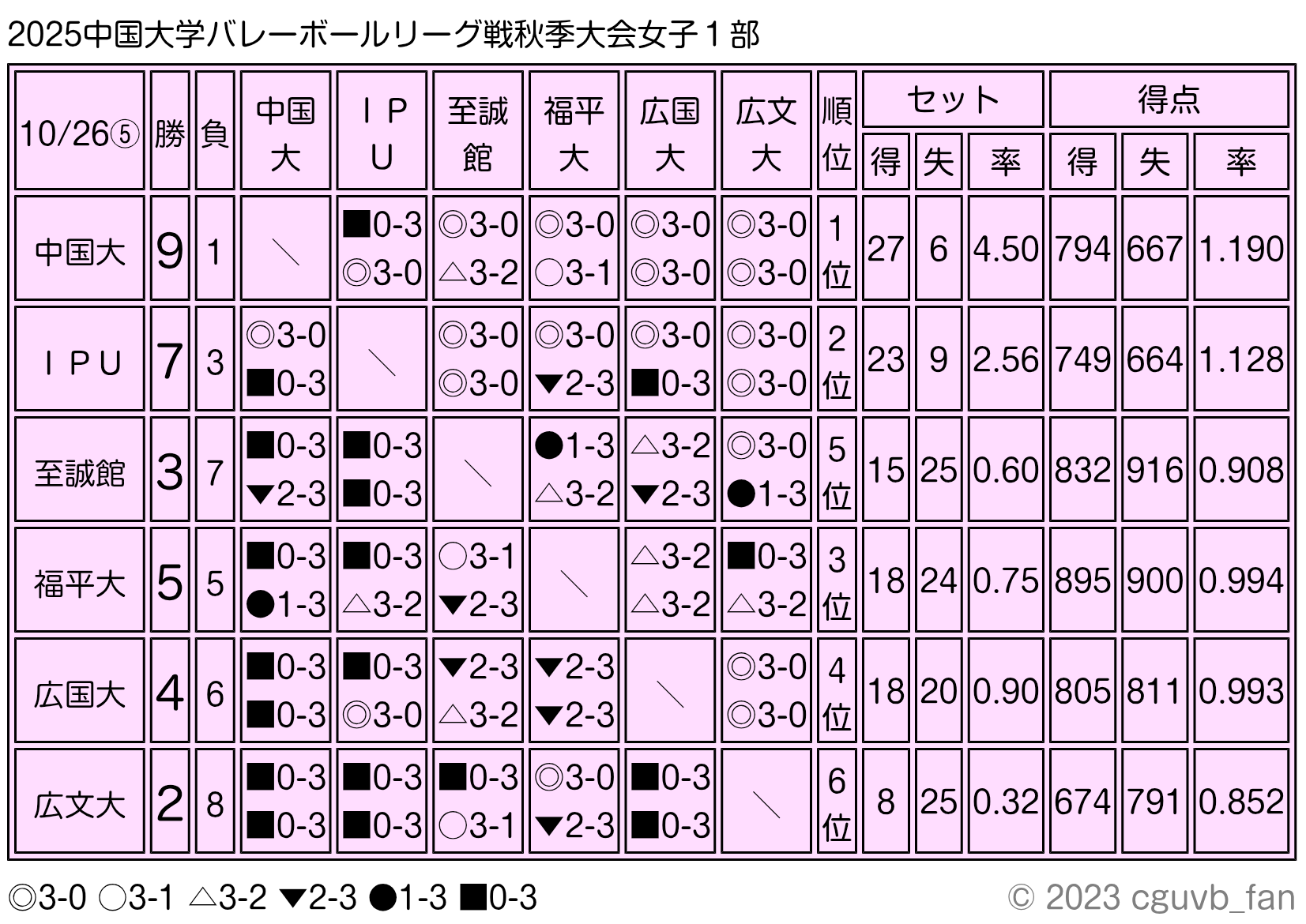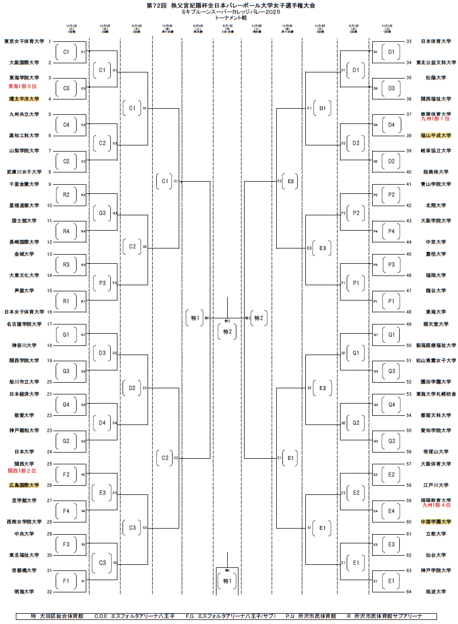 | 中国大 | 福岡教育大学(九州4位) | E4 | エスフォルタ八王子 |