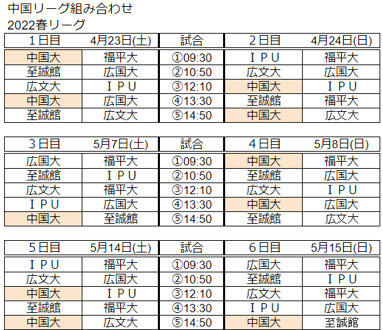 ▼男女1部 4月23・24日 岡山県(備前市総合体育館) 5月7・8日 山口県(下関武道館) 5月14・15日 広島県(広島県立総合体育館)